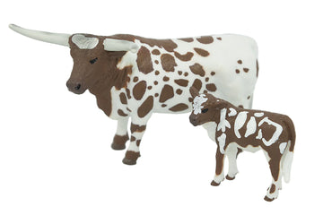 Our 1:20 scale hand-painted Longhorn Cow and Calf are perfect for pretend farm and ranch play! Build your own heard of Longhorn cattle or mix and match them with our other breeds. PLAYABLE & COLLECTIBLE: All toys fit with Big Country Toys full line of 1:20 scale farm and rodeo vehicles, figurines, animals, and accessories