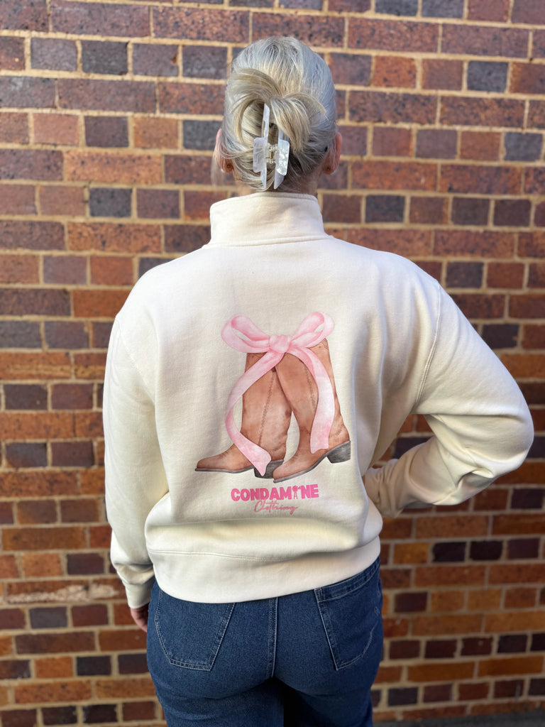 The signature CC logo is printed on the front, with a charming boots & bow print on the back—perfect for adding a touch of personality to your look. Whether you're relaxing at home or out on the go, this jumper is a wardrobe essential! 🌟