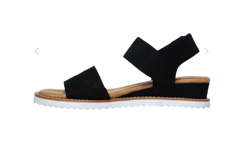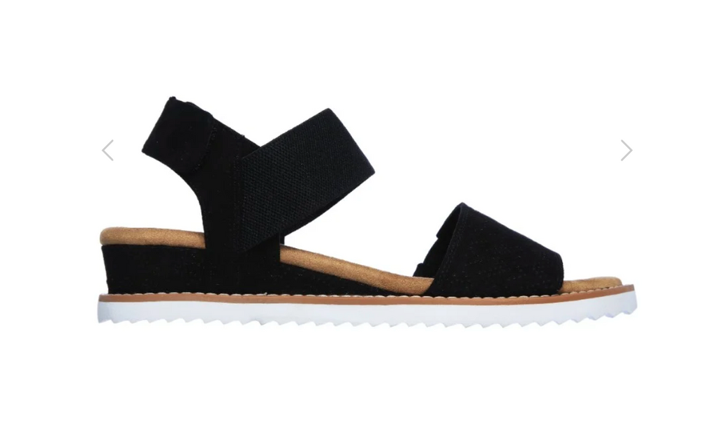 Start your leisurely day in boho breezy style wearing BOBS from Skechers™ Desert Kiss. This low profile wedge sandal features a die-cut microfiber upper with a gore instep strap, adjustable slingback closure, and a Skechers Memory Foam™ cushioned comfort footbed.