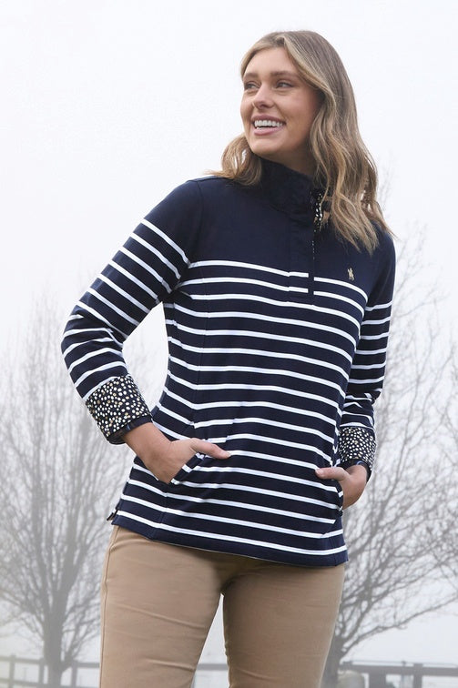 Heavyweight french terry stretch knit rugby, contrast metallic spot trims
