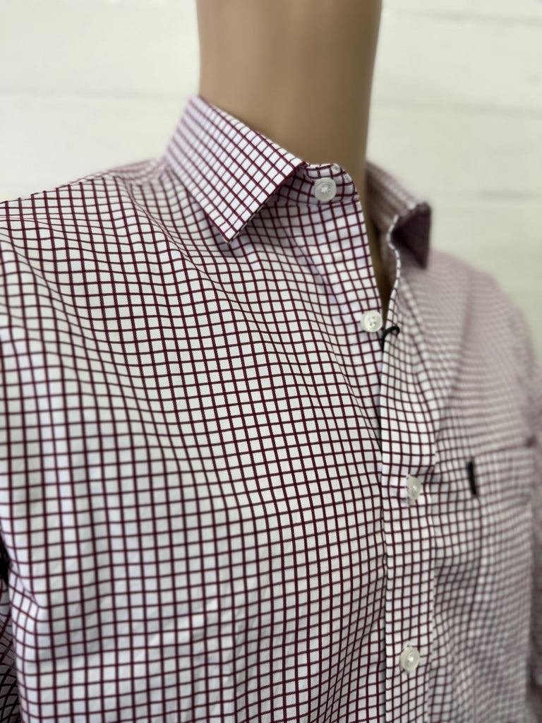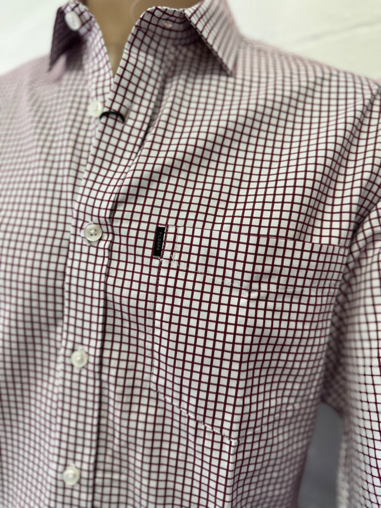 Pilbara Mens L/S Shirt Single Pocket-Burgundy White