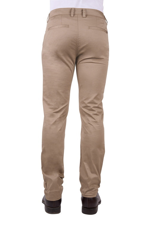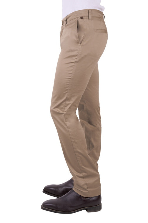 Men's Mitch Slim Pant in Sand features a slant pocket style pant in premium fabric with cotton and elastane blend. Slim tapered leg fit, slimmer through the seat and leg. Bias cut waistband for extra comfort. Extra stretch for comfort and movement. Deep front pockets and twin back belt loops. Back welt pockets with mock leather label. Horseman embroidery on front sland pocket.