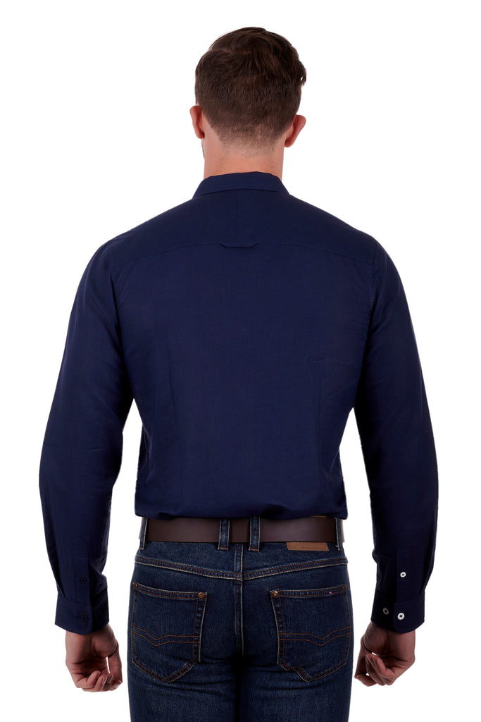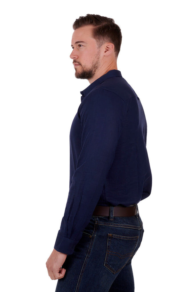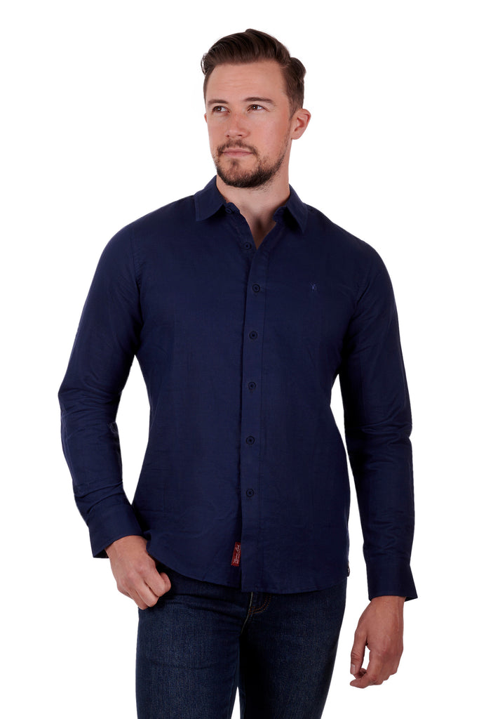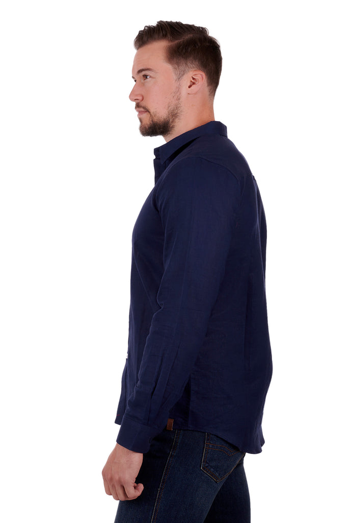 TC Mens Tailored Navy Linen Shirt