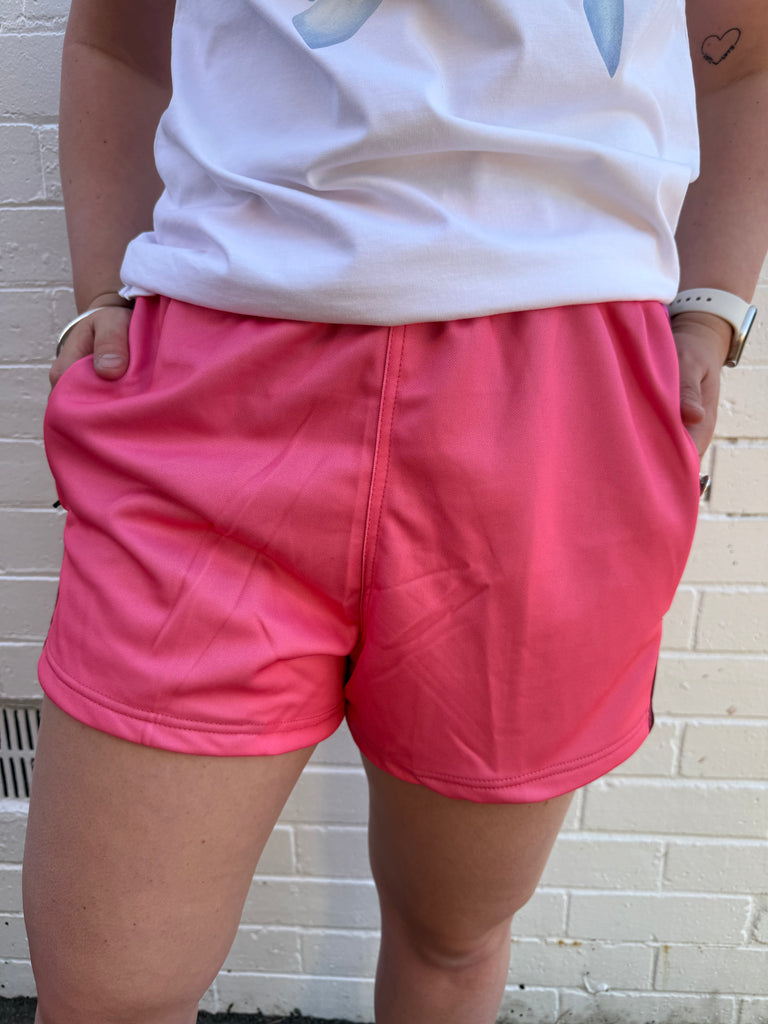 Adults CC Rugby Shorts - Pink & Burgundy Plaid