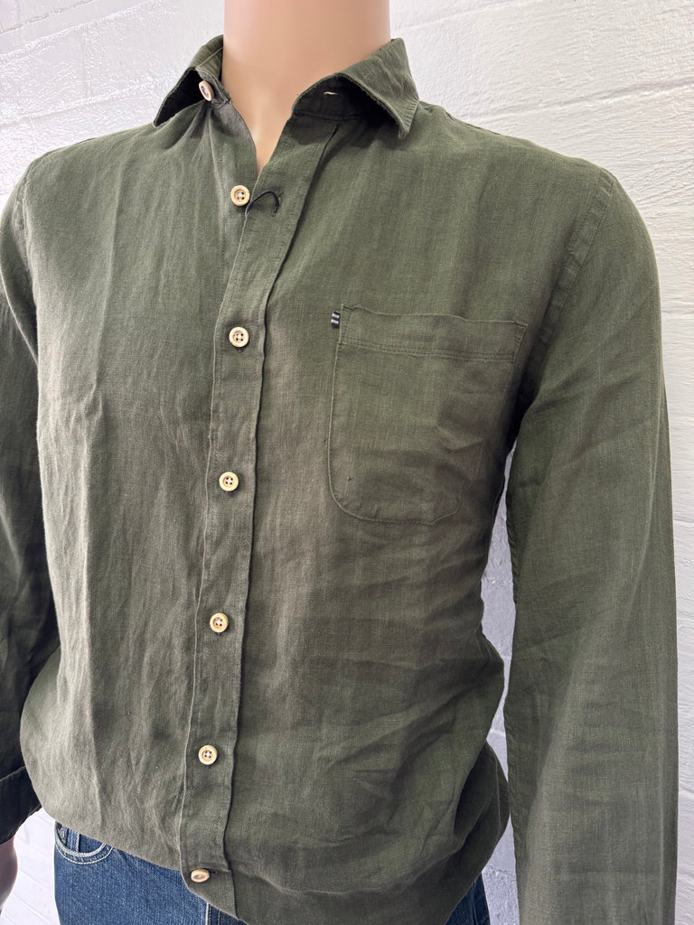 Pilbara Mens Linen L/S Pocket Shirt Olive