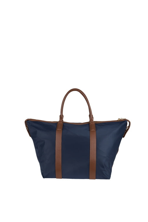 Top zip closure, contrast trim and carry handles, internal zip pocket, internal padded laptop sleeve, logo metal badge, fully lined