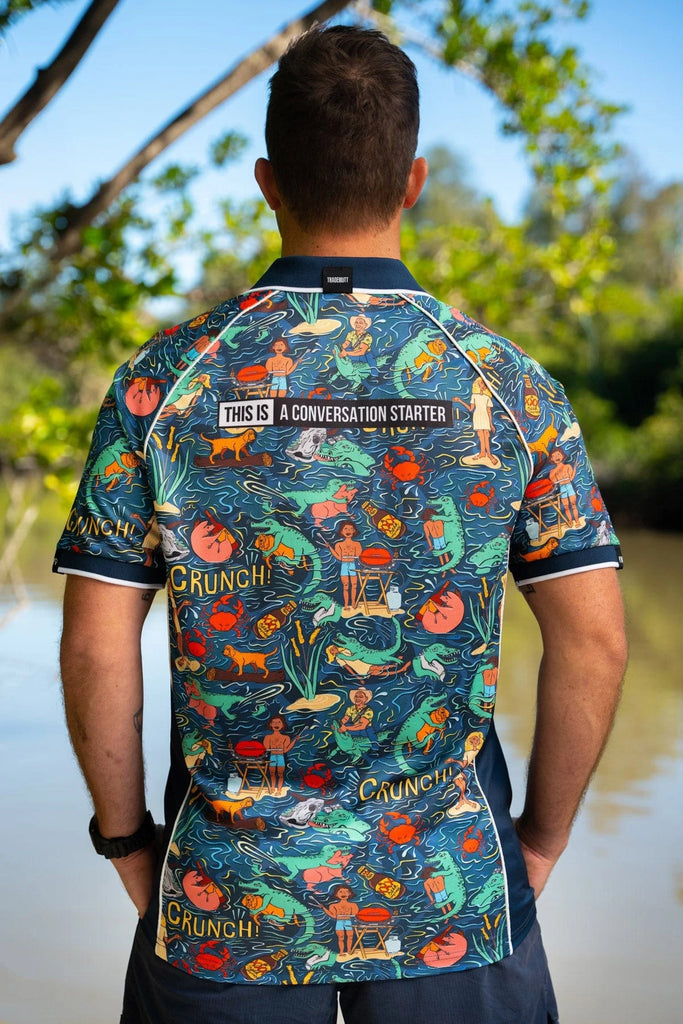 Trademutt Unisex Stop Croc & Roll Full Print Short Sleeve Polo