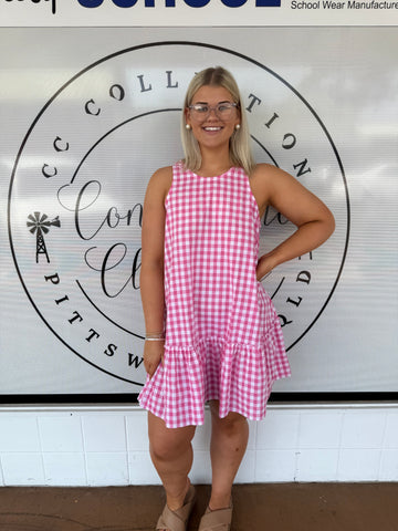 Sweet, effortless and ready for warm-weather days, the LJC Annie Dress in Pink Gingham Cotton is your go-to for relaxed feminine style. Designed with a relaxed midi silhouette, this dress features a dropped waist with soft ruffle detailing, creating a floaty, flattering shape that moves beautifully with you.
