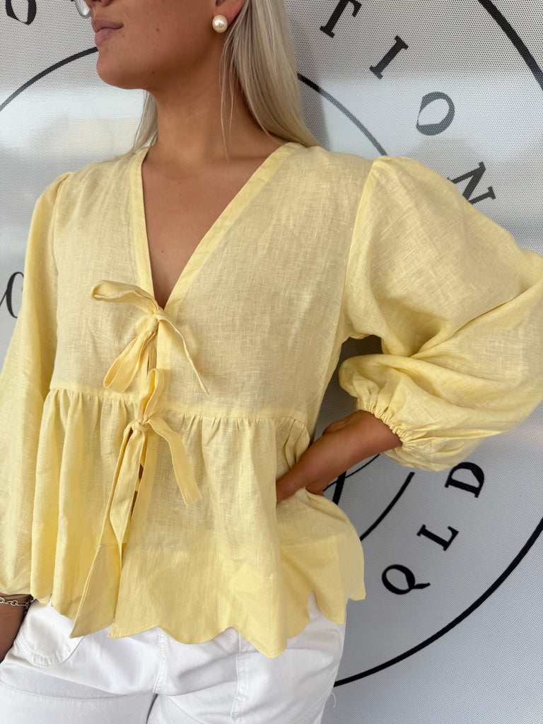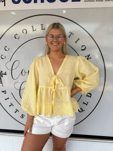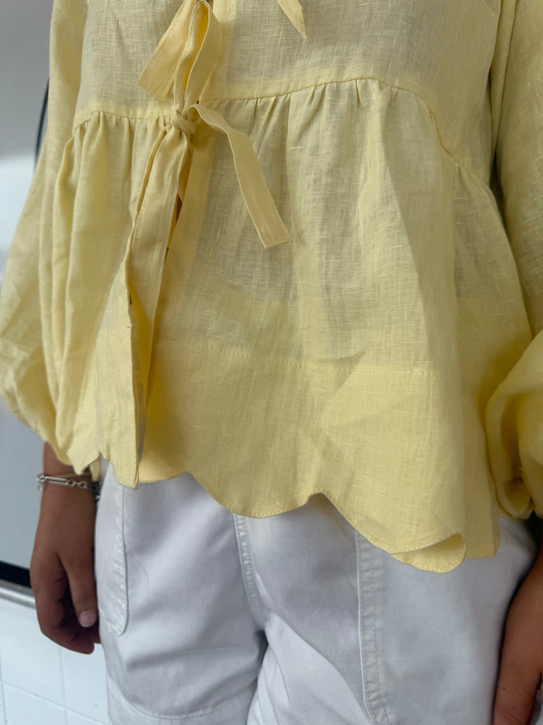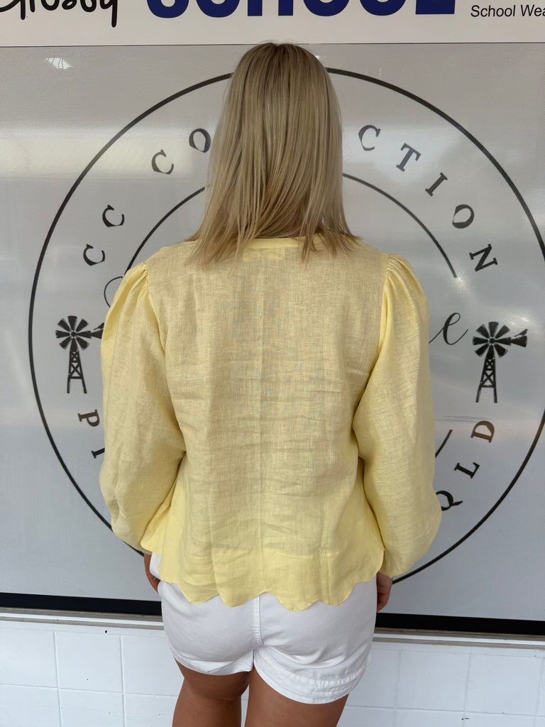 A fresh take on a bestselling silhouette – the LJC Gemma Linen Top in Butter is a statement staple for cooler seasons. Inspired by the beloved Pia Top, Gemma features full-length balloon sleeves, making it the perfect transition piece for layering in autumn and winter.