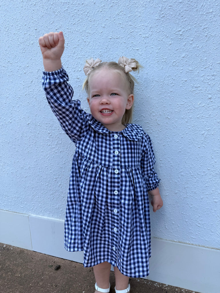 LJC Girls Hattie Dress Cotton | Navy Gingham